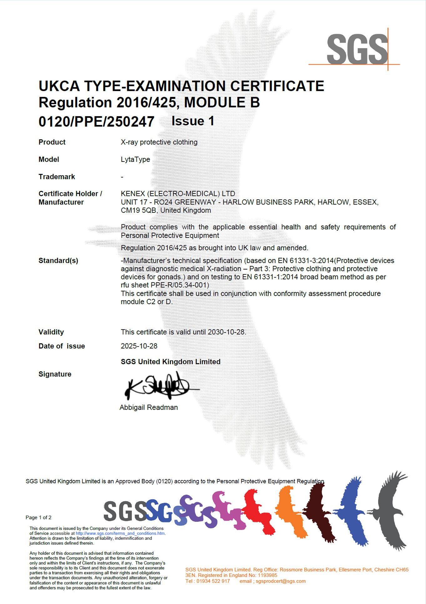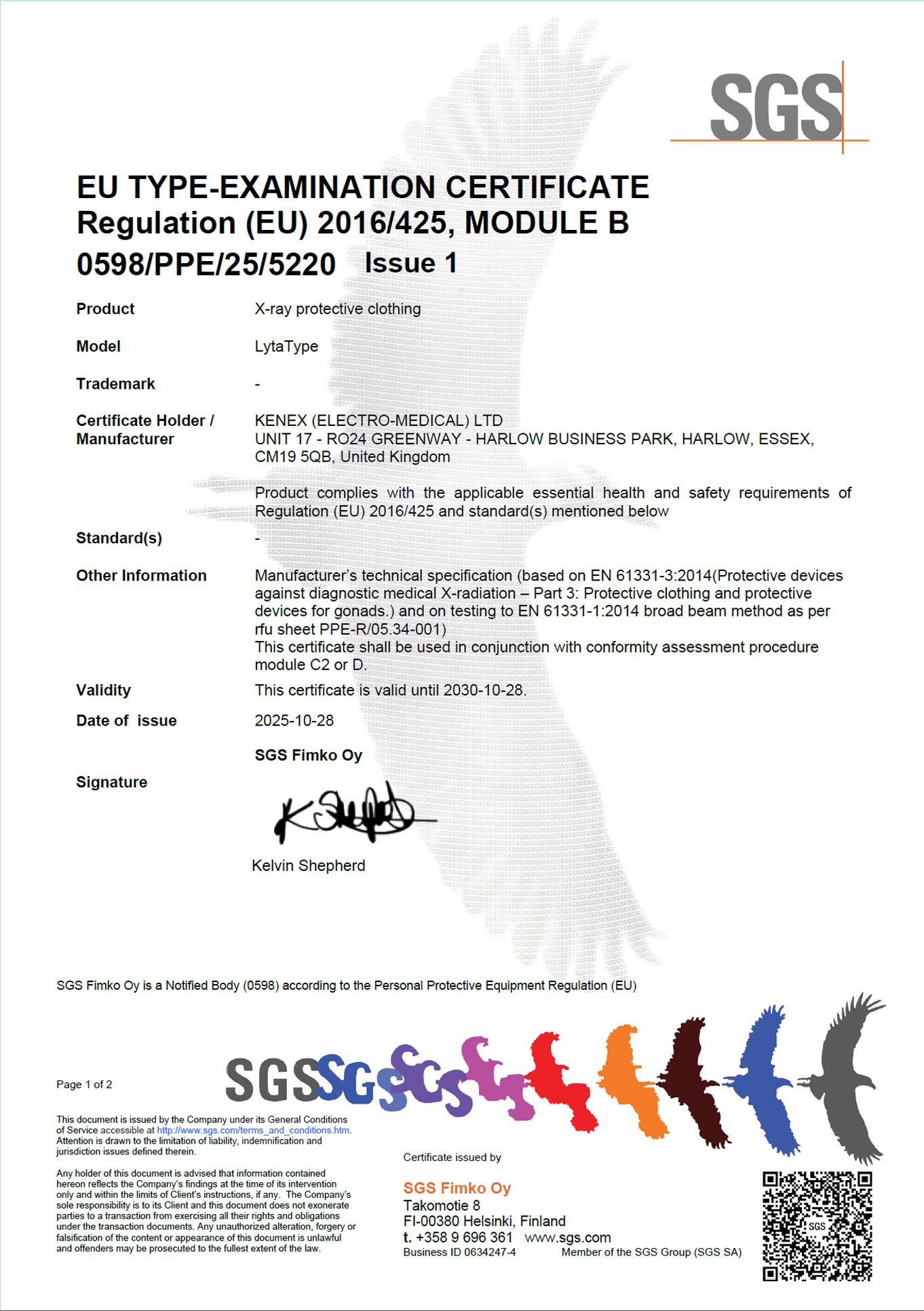 Declaration of Conformity PPE 2016/425