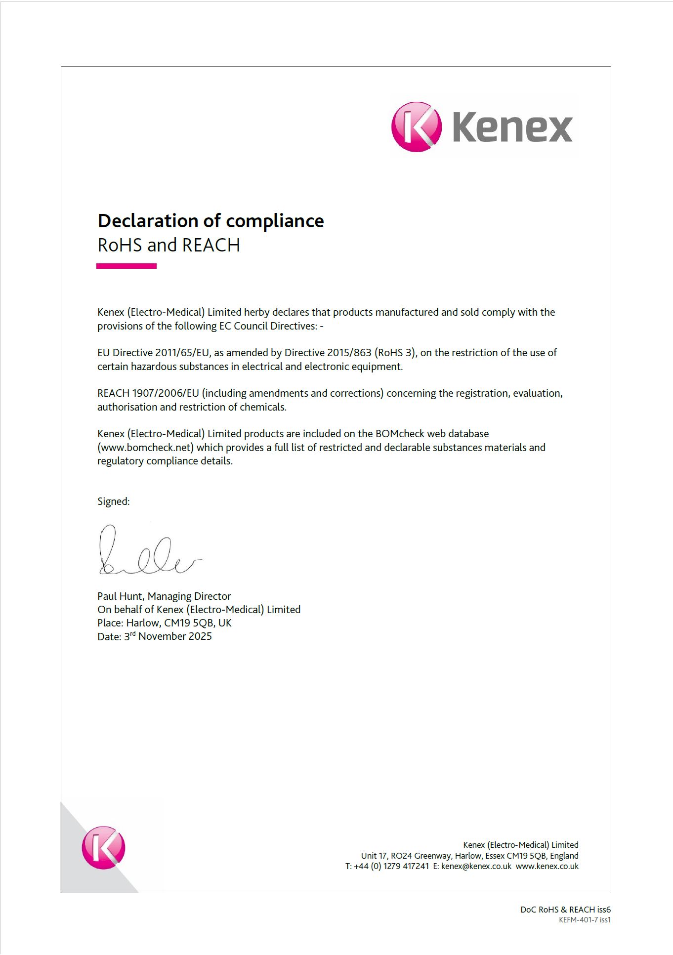 RoHS & REACH declaration issue 6