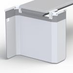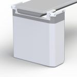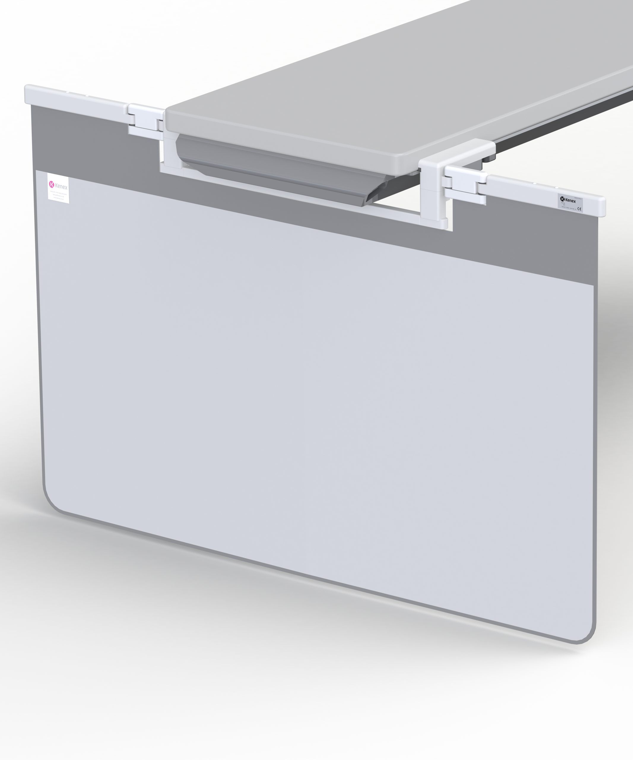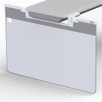 Lightweight and durable structure for an Allura AD7 table. Fixed central section and two pivotal side arms supporting a flexible curtain. Semi-flexible fold-down top shield included.